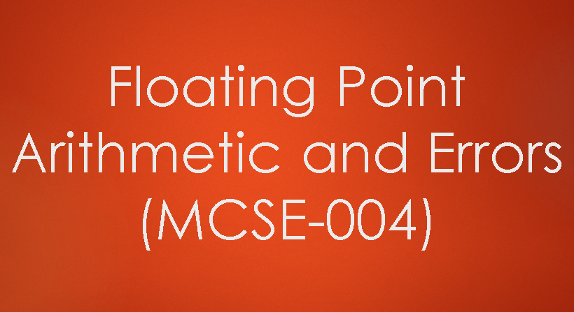 This presentation contains a brief description about floating point numbers and their representation and arithmetic, types of error (absolute error, relative error)