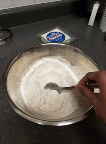 - Mix wheat flour, maida, baking soda, baking powder, salt and sugar together in a bowl. You can reduce maida even more and can still get soft rotis. [Yes you heard me right, I have tried it too.. hehe]