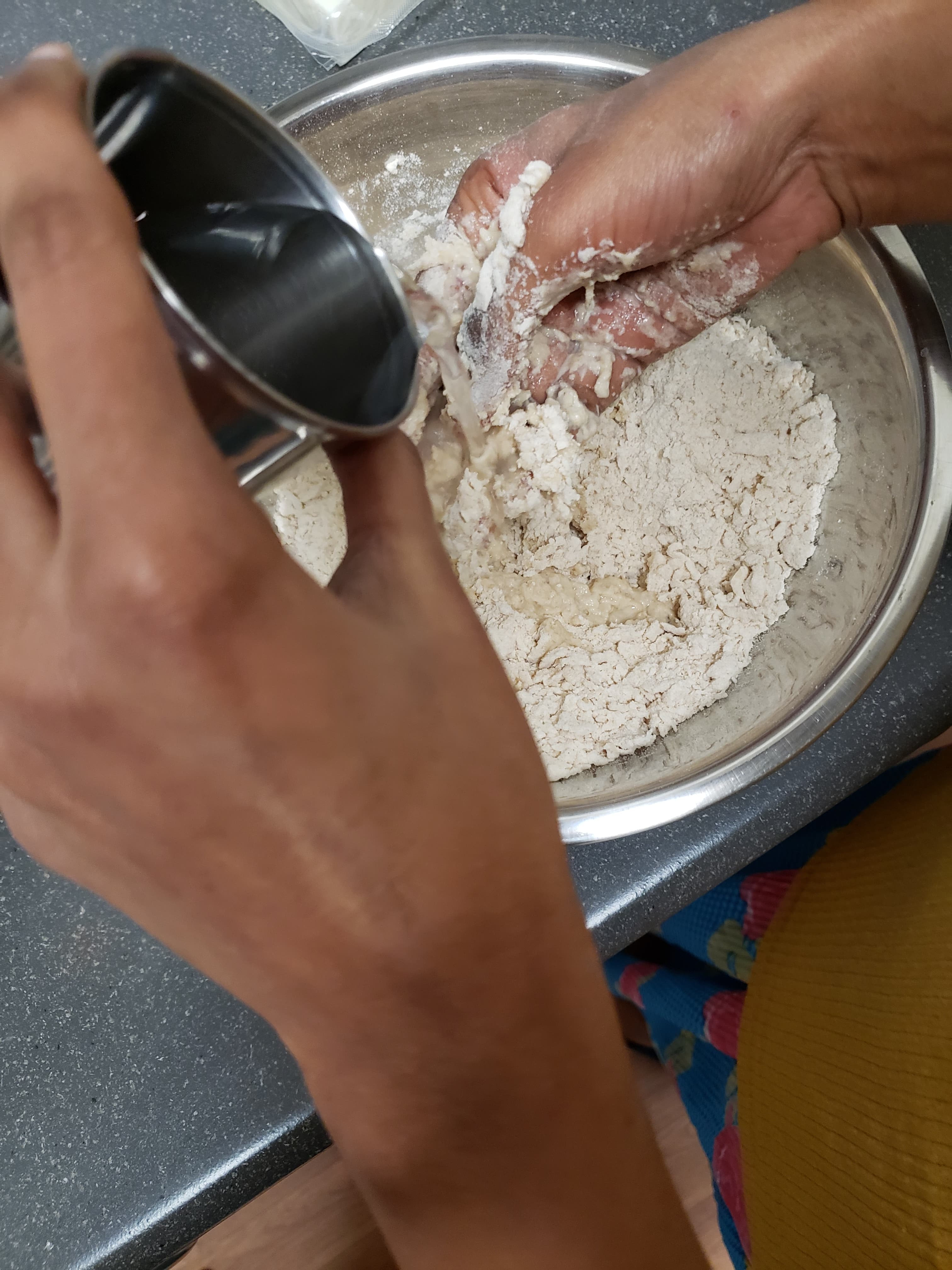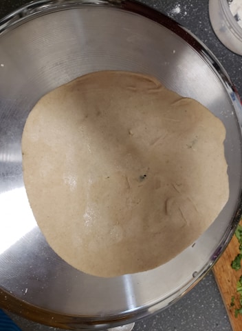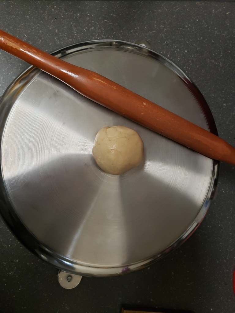 3. Knead the dough for 2minutes and take a small ball. Roll the ball into a circle(slightly thick).